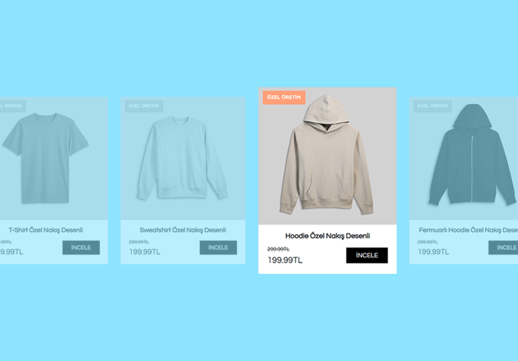 T-Shirt, Sweatshirt, Hoodie gibi ürünlerden herhangi birini seçin ve ürün detayına gidiniz.